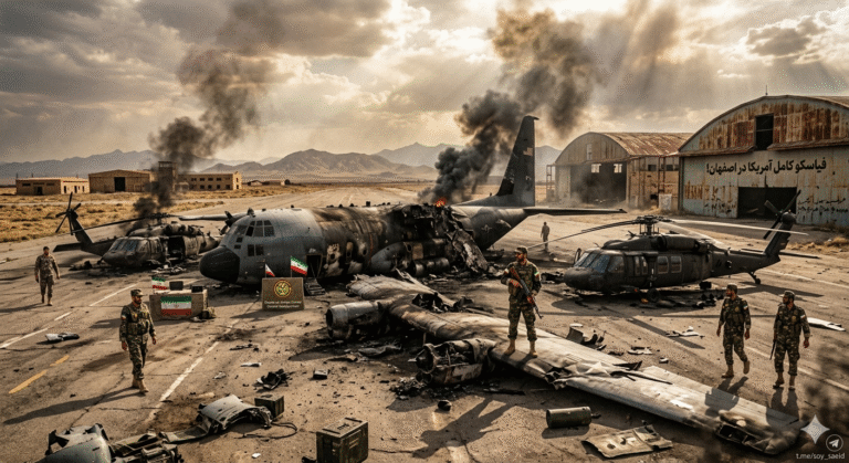 Impactantes imágenes y detalles de la destrucción de dos C-130 y dos Black Hawks estadounidenses al sur de Isfahán. Irán desmiente la versión de Washington y califica la operación como una derrota humillante.