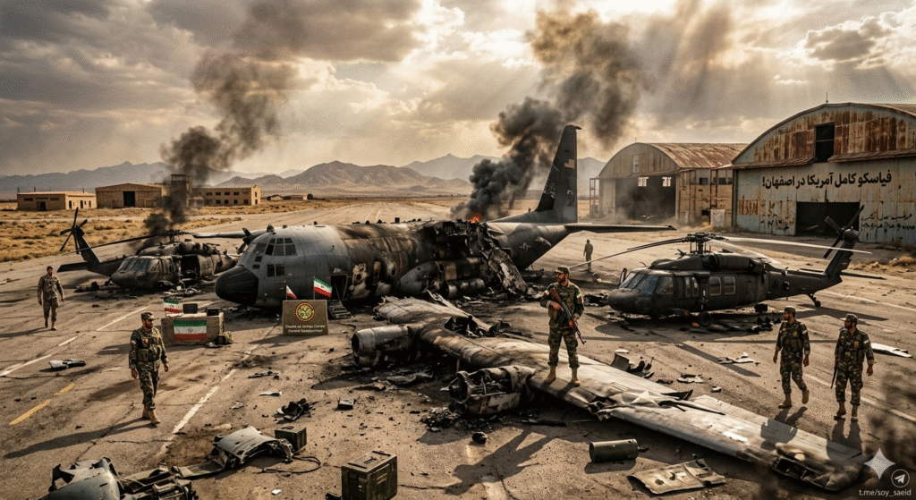 El escenario del fracaso fue un aeropuerto abandonado al sur de Isfahán, donde la «oportuna presencia» de las Fuerzas Armadas de la República Islámica de Irán frustró cualquier intento de retirada exitosa de las tropas invasoras.